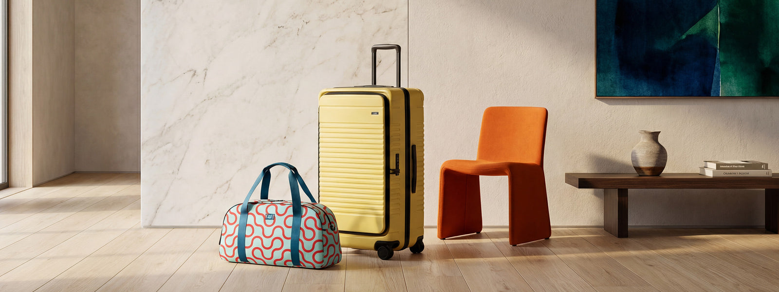 Our collaboration with Brooklyn-based designer Ellen Van Dusen began in 2019 with a bold Lemon suitcase that sold out in a week. Since then, the partnership has grown to include our striped soft bag collection (nearly sold out, with just a few backpacks left) and our newest release, created with the MoMA Design Store: the Arc Weekender and Arc Dopp Kit.
