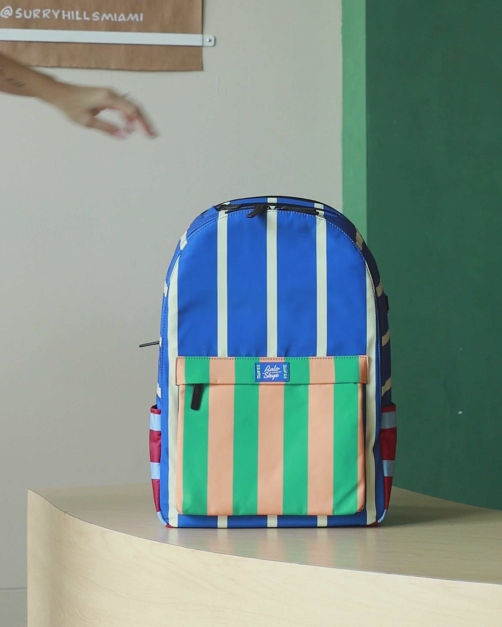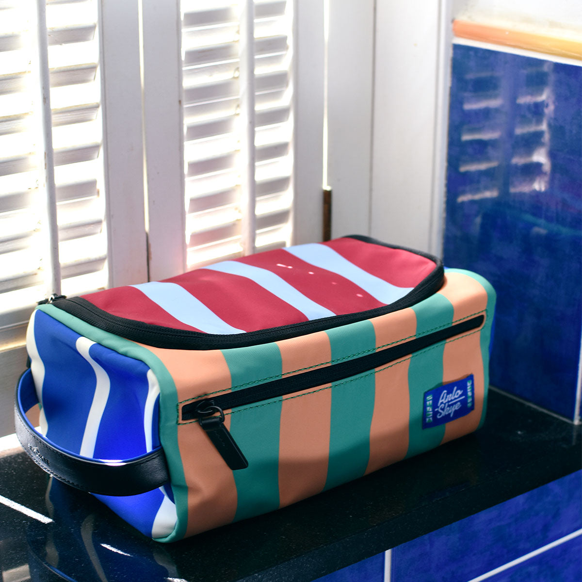 Meet the lastest collaboration with Dusen Dusen. The tastemaking Brooklyn-based homeware and womenswear designer known for her bold and playful prints reimagined Arlo Skye’s Backpack, Weekender and Dopp Kit in a multi-striped exterior print. The eye-catching bags are lightweight and water-resistant with seam-sealed zippers, odor-canceling antimicrobial interior linings and an Italian leather trim.