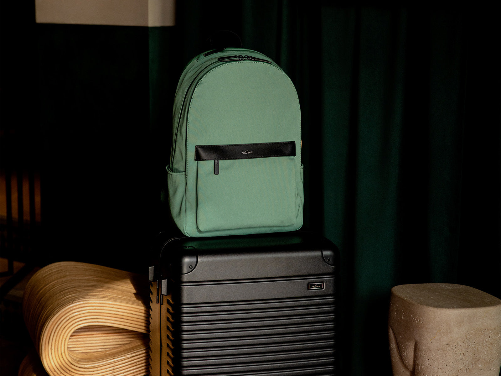 Why: Four-sided ventilation, scratch-proof fabric, white-gold hardware, and a smart sleeve that slides over luggage—comfort meets first-class flair.